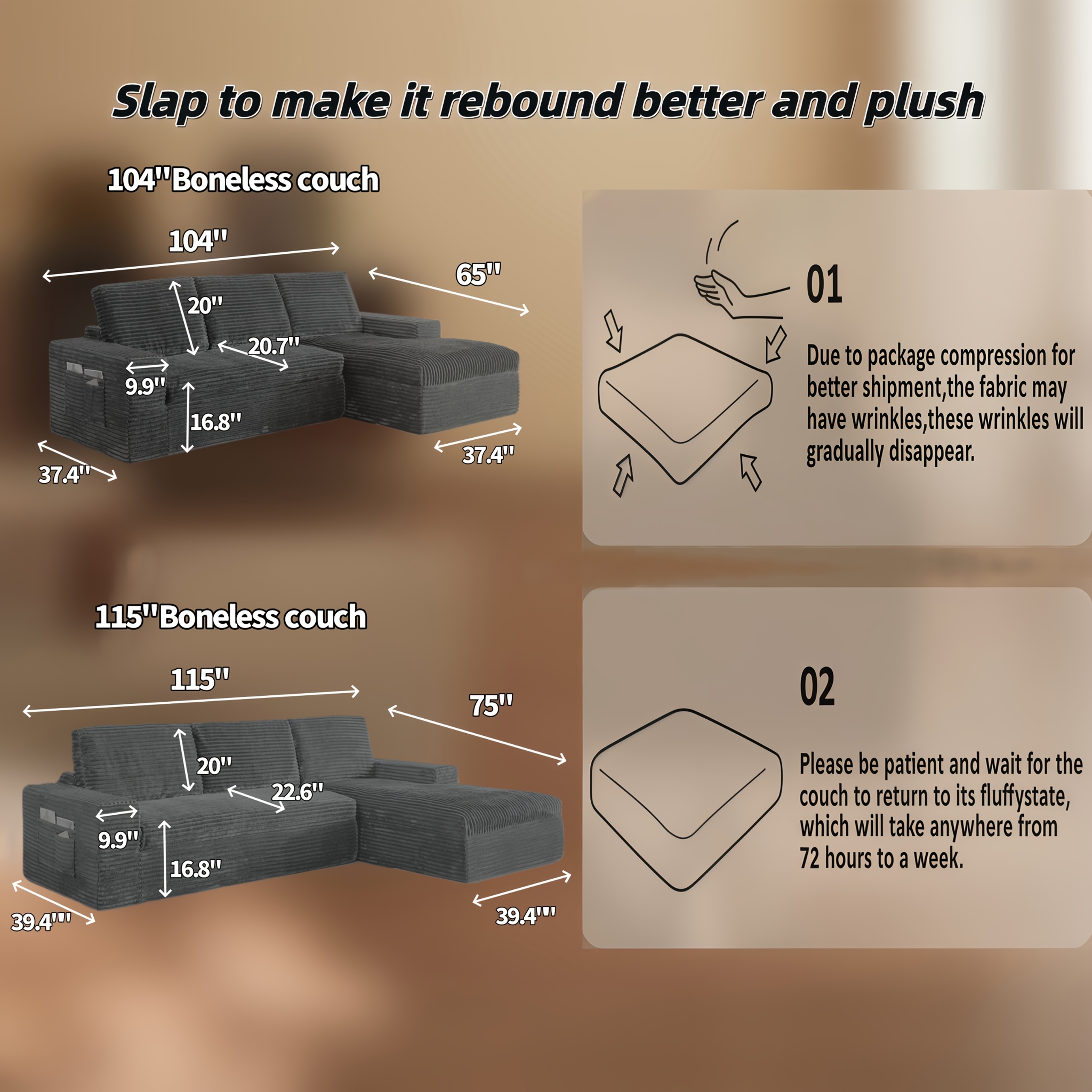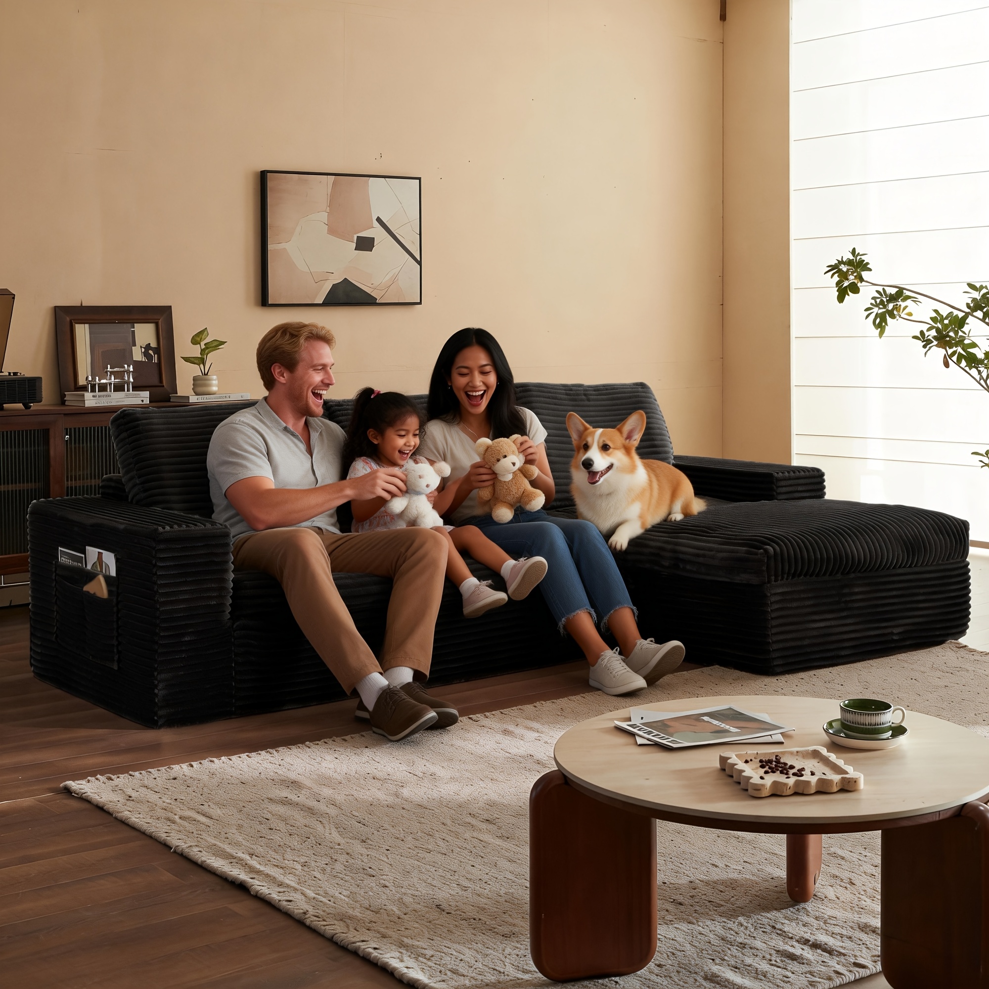 106-Inch Modern Modular L-Shaped Sofa, Featuring a Right-Facing Chaise, Soft Cushions, Exquisite Design, And Easy Assembly, Perfect for Spacious Areas - an Ideal Choice for Living Rooms And Apartments